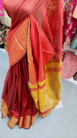 Plain Organza Saree w contrast Pallu & Blousepiece