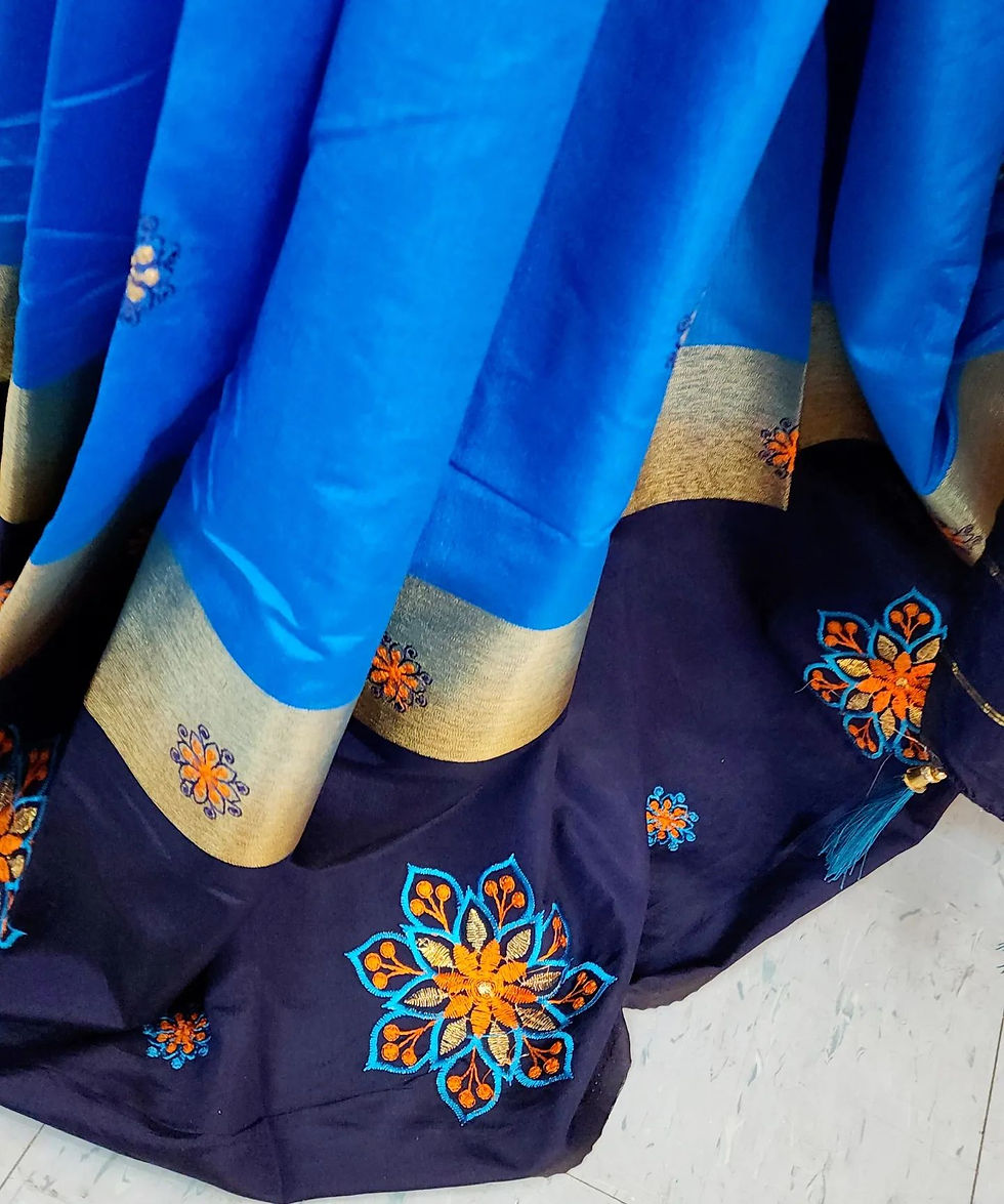 Embroidered Blouse with sleeve & Back Cut-Out Work